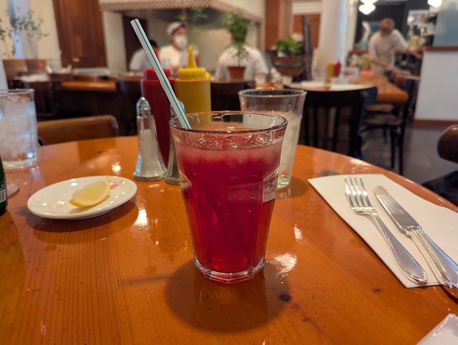 酸味のあるクランベリージュースで口をリセットすると、また一口が進みます。