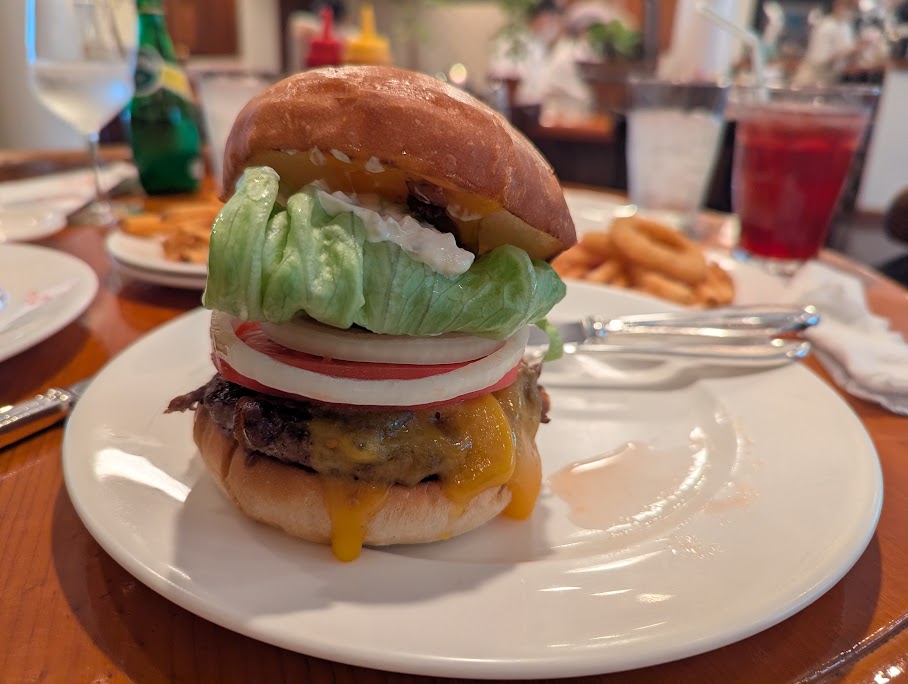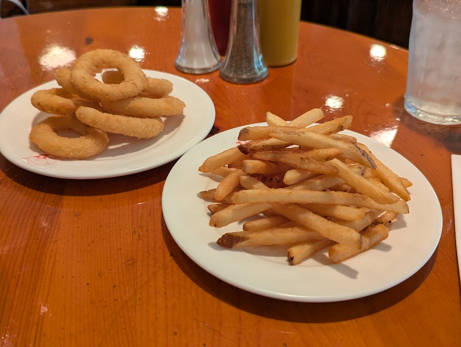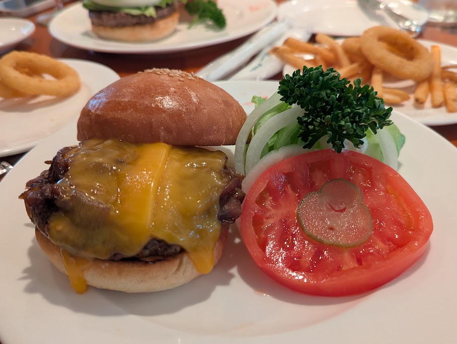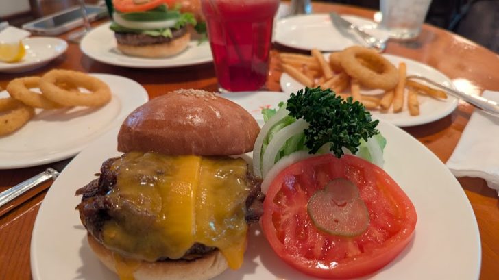 フレンチフライは外サクサク、中ホクホク。オニオンリングは衣が軽くて、噛むと甘みが広がります。シェアでちょうどいい量感でした。夫は外食の揚げ物で肌が荒れやすい体質ですが、ここでは大丈夫だった様子。油の鮮度が良いのかもしれませんが、あくまで個人の体験として参考までに。