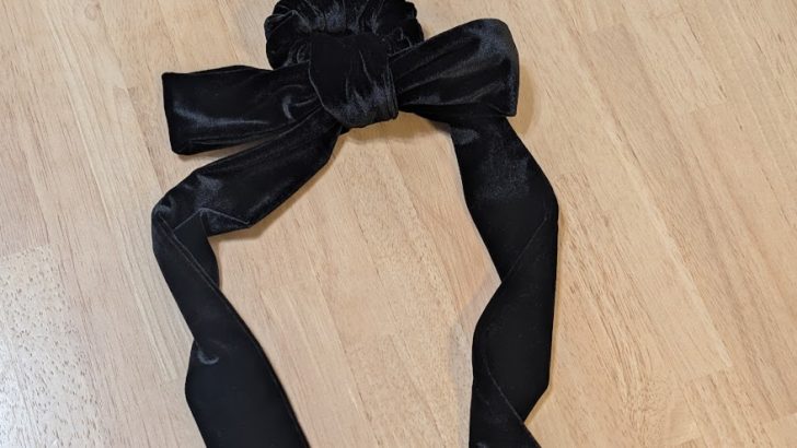 私はローポニーテールのヘアセットに合わせました。結ぶだけのシンプルな髪型でも、このリボンシュシュをつけるだけで一気に華やかになります。ヘアアクセを主役にしたいときに、ちょうどいい存在感です。