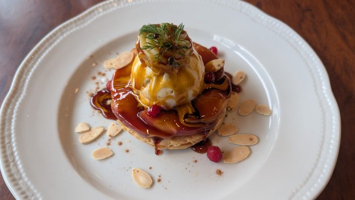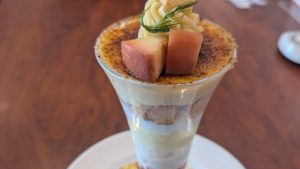 食後に、紅玉りんご&スイートポテトのパイ仕立てを注文しました。以前食べたブリュレパフェがとてもおいしかったので、期待値がかなり高かったです。