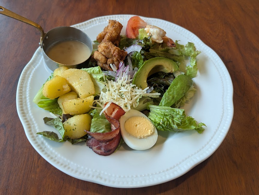 ただ、今回は今まで食べたときよりも明らかに量が少なく感じました。たまたま作る人の違いなのか、仕様が変わったのかは分かりません。また、いつも入っていた舞茸が見当たらず、なくなったのか入れ忘れなのかも分からず少しモヤッとしました。それでも味自体は変わらずおいしいので、ロイホのサラダとしてはおすすめです。