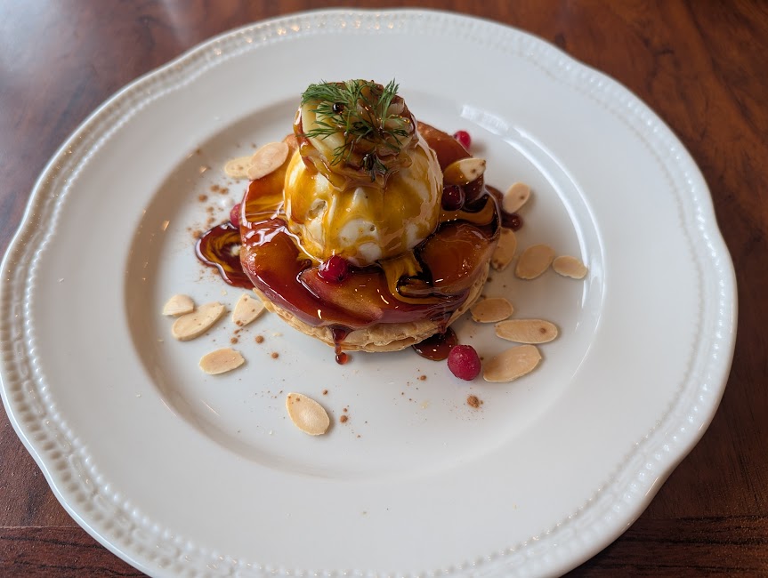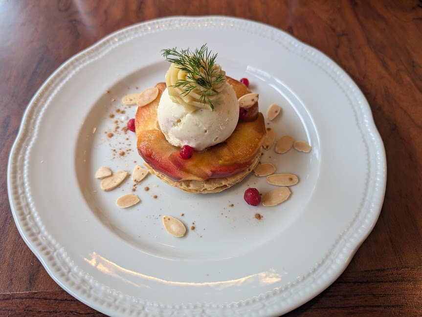 デザートは紅玉りんご&スイートポテトのパイ仕立て