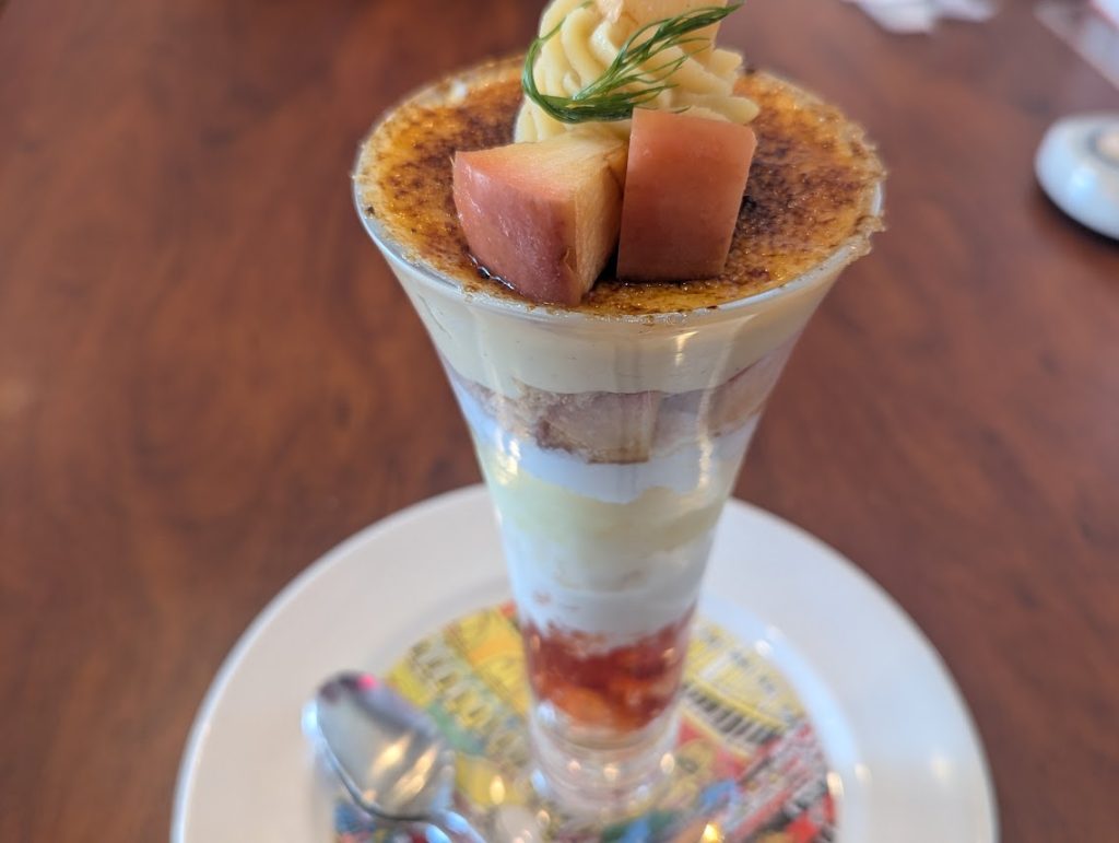 スイーツって、甘すぎたり重すぎたりすると後で罪悪感を感じやすいけれど、このパフェは違いました。キャラメルやスイートポテトの甘さに、紅玉りんごの酸味やりんごソルベの爽やかさがうまく効いていて、全体が重くなりすぎず、ぺろっと食べられるバランス。甘いものが苦手な人や、デザートに罪悪感を持ちがちな人にも、きっと満足できると思います。