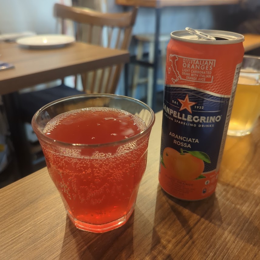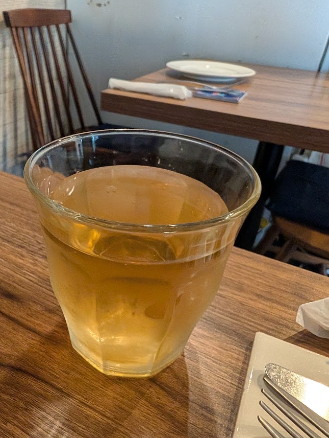 私はブラッドオレンジソーダ、夫はオリーブティーを頼みました。ブラッドオレンジソーダはさっぱりしていてディップや揚げものともよく合いました。