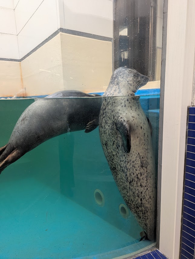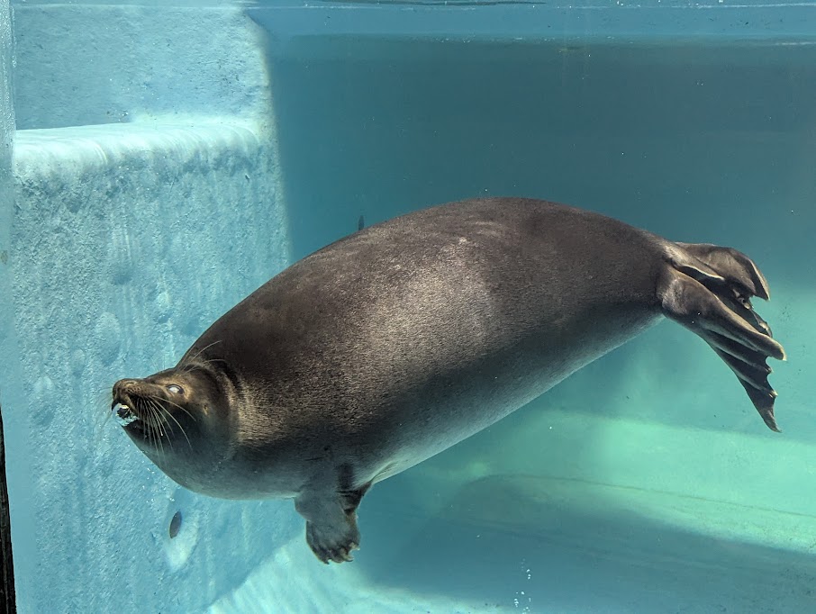 よく端っこで直立しているアザラシ。顔はニコニコ。