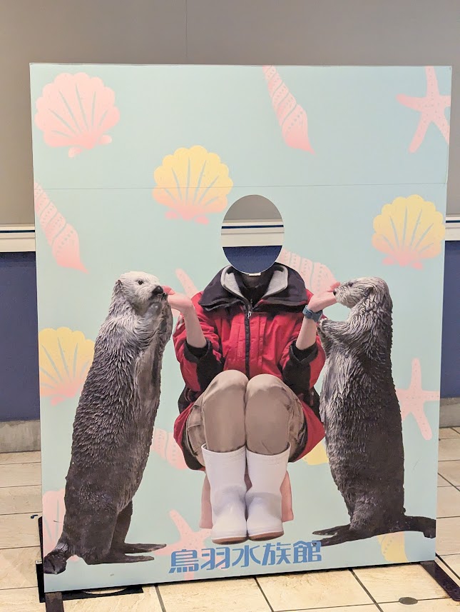 出入り口付近に置いてあるラッコ飼育員さんになることができる夢のようなパネル。