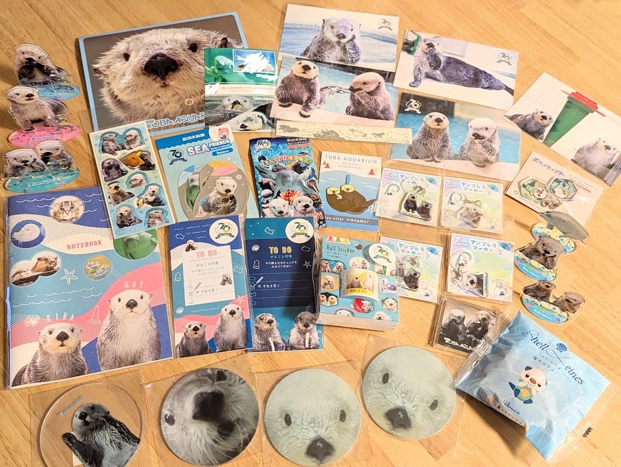 ポストカード、ステッカー、鳥羽水族館コレクションカードなどいろいろ買いました。日常にラッコ成分を補給できるラインナップで、ついカゴに入れてしまうやつ。