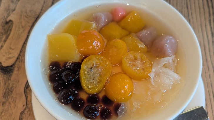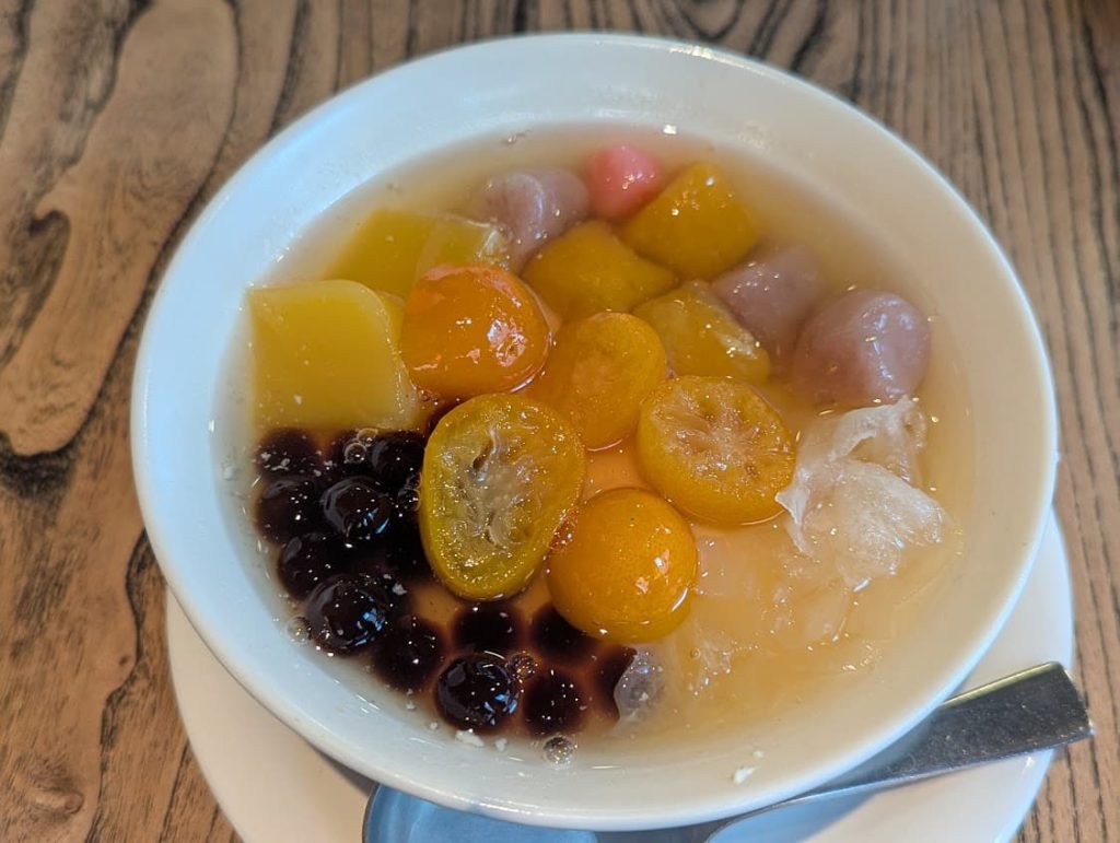金柑豆花は、あったかくて、甘酸っぱくて、すごくおいしかったです。豆花自体のやさしい甘さに、金柑の酸味が合わさって、重くないのに満足感があります。食後のデザートとしてちょうどよくて、冬っぽい感じもあって、季節の楽しみを感じました。